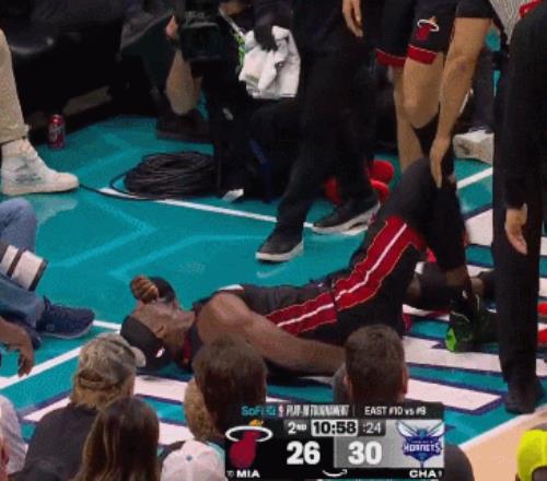 事情發生在第二節還剩10分59秒的時候。當時阿德巴約正拼了老命想把一個快出界的籃板球給撈回來,結果三球居然直接拉拽了阿德巴約的腳踝!雖說這一下起初看著似乎不算太嚴重,但阿德巴約結結實實地摔在了地板上,隨后他的狀態就被改成了“出戰成疑”。